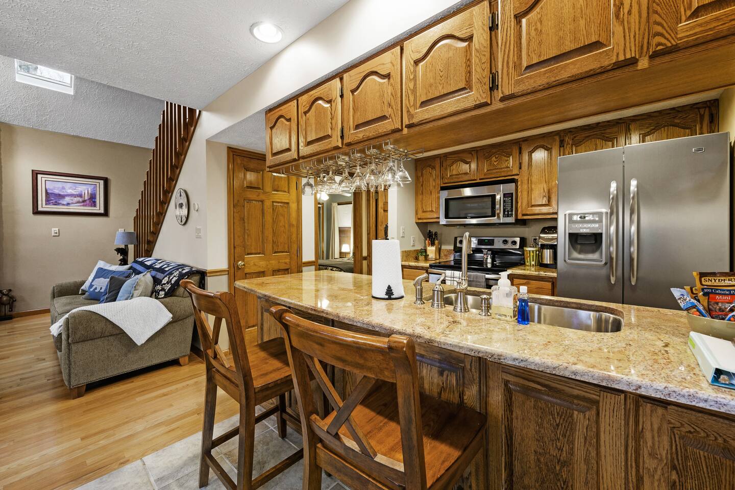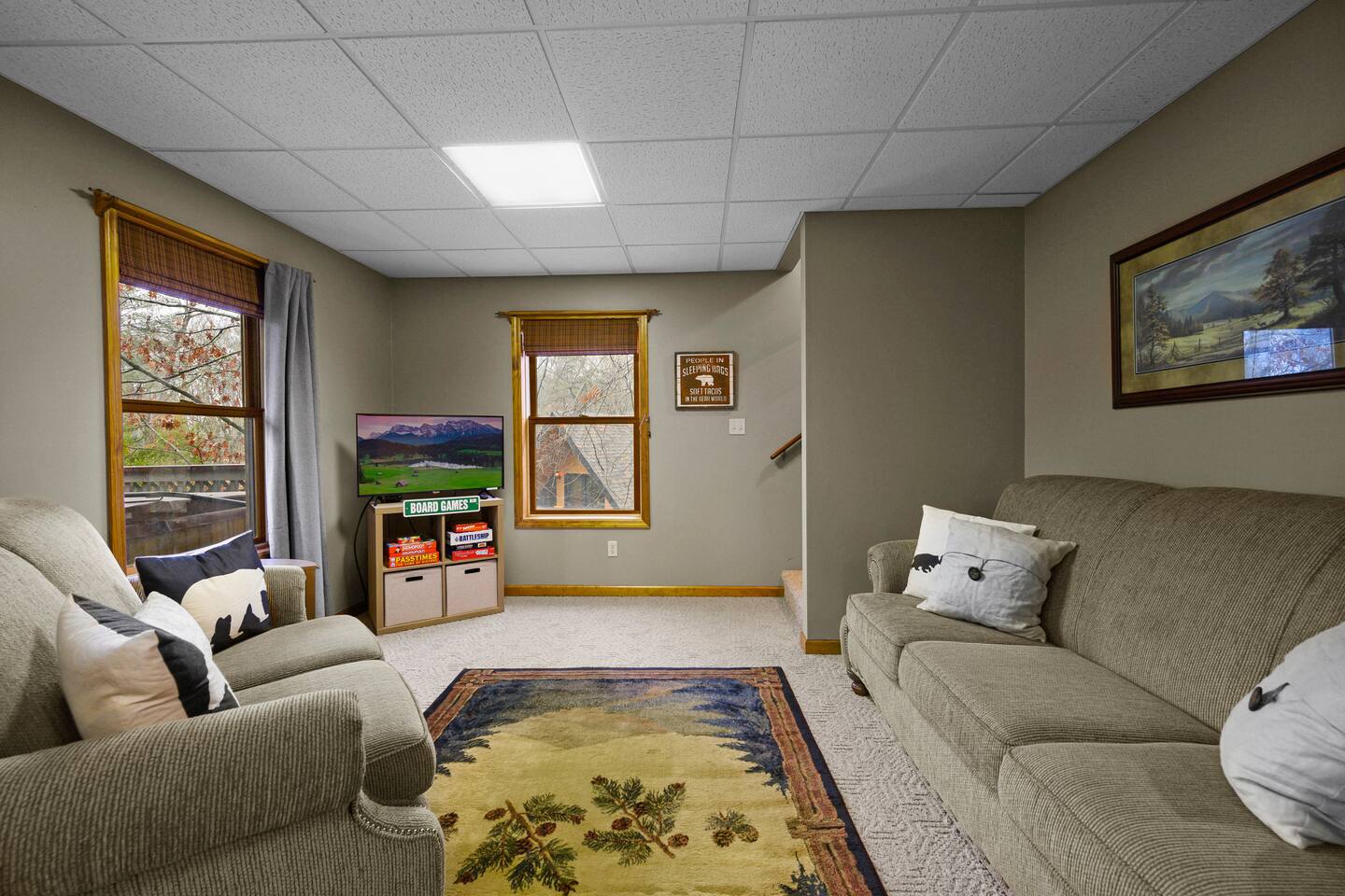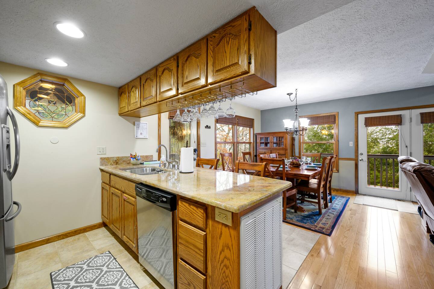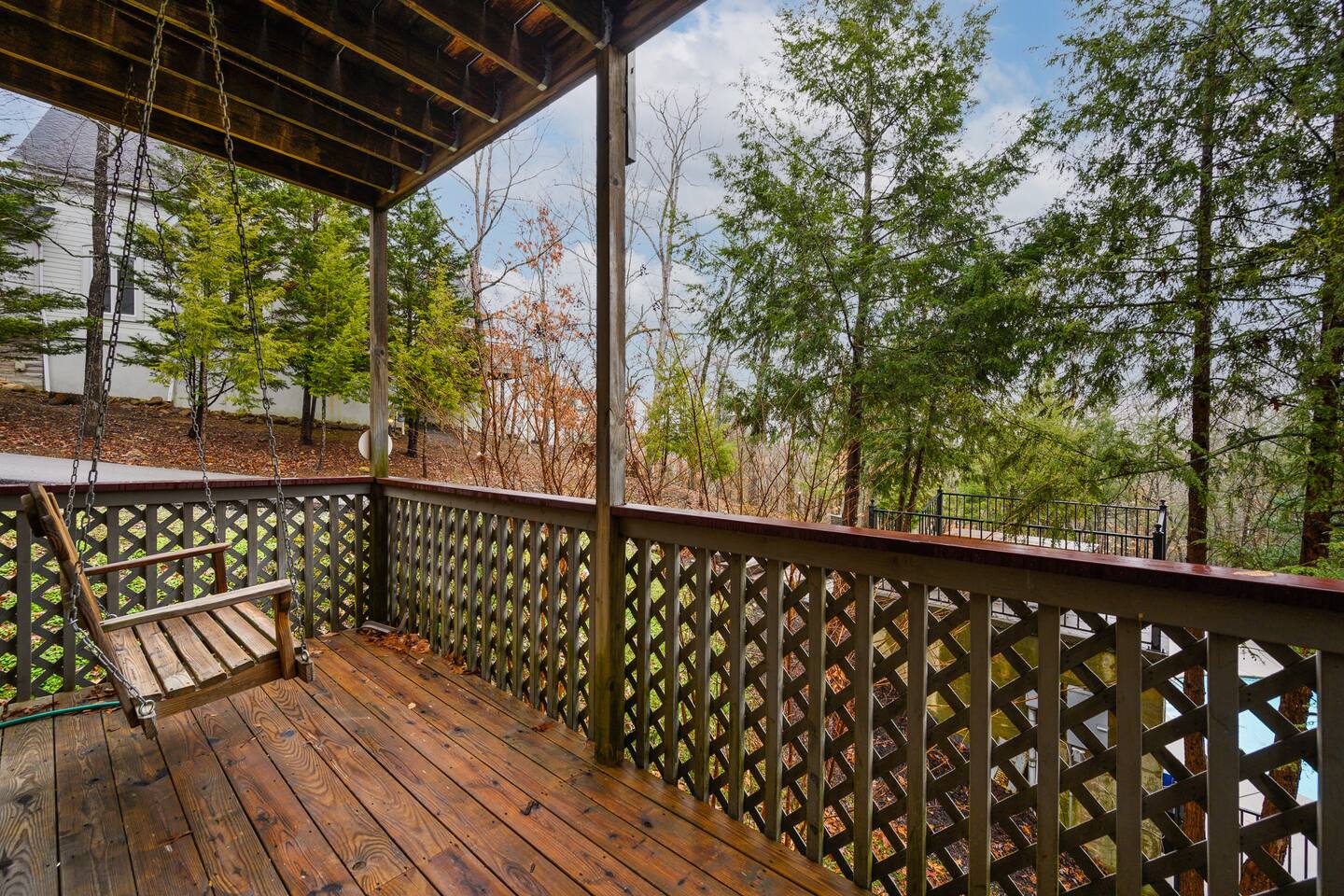 New Smart TV’s in 3 of the 4 Bedrooms Master Bedroom: King Bed Bedroom 2: Queen Bed Bedroom 3 (Bunk Room): Twin-over- Twin Bunk Bed and Single Twin Bed Bedroom 4: Queen Bed We also provide a twin trundle bed and pack and play. Arrive at your cabin and take in the beauty of the surrounding trees and gorgeous pool just off the back of the house. Step inside to admire the bear-themed décor. Cathedral ceilings, long-view windows and open layout, make the place bright and airy so you can easily stay connected with your loved ones while enjoying the surrounding scenery! Gather in the living room on the leather chairs which sits in front of the gas stone fireplace, choose a movie to play for the group on the flat-screen smart TV equipped to access Netflix, Hulu, Disney+, or Amazon prime account. For more entertainment, try to beat the high score on one of our three arcades! Stay Connected with your friends and family by snapping a pictures throughout your stay. Tag us on social media to receive discounts on your stay. Hungry? Make your way into the fully equipped kitchen, featuring granite countertops with new appliances, and prepare a delicious home-cooked meal for your friends and family. Savor your meals from the charming dining room table and share stories of the day’s adventures. We even have a booster seat for children and camping themed dishes for kids. After you’ve cleared the dishes, enjoy some fresh air and sip a nightcap from the hand crafted wooden love seat porch swing on the deck while keeping an eye out for wildlife. Before calling it a night, soothe your muscles in the hot tub so you aren’t sore for the next day’s activities. As the day comes to an end, retreat to one of the 4 themed bedrooms which all feature custom sheets and comforters for a good night’s sleep. Additional features: • High speed Internet • Large deck area • Private Hot tub • Game area • Washer and dryer • Clean towels and bed linens • Flat driveway large enough for 3 cars